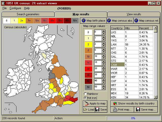 The screen dump below is from the 2% sample of the 1851 UK census, and shows the distribution of folk with the surname NORRIS across the UK. In short, the densest location of the name is in Lancashire.