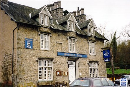 Sam Strickland visited Sizergh early in 1998 and kindly lent the following 2 pictures - the first is of the Strickland Arms Public house (located just outside the castle gates), the second of the castle itself.